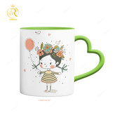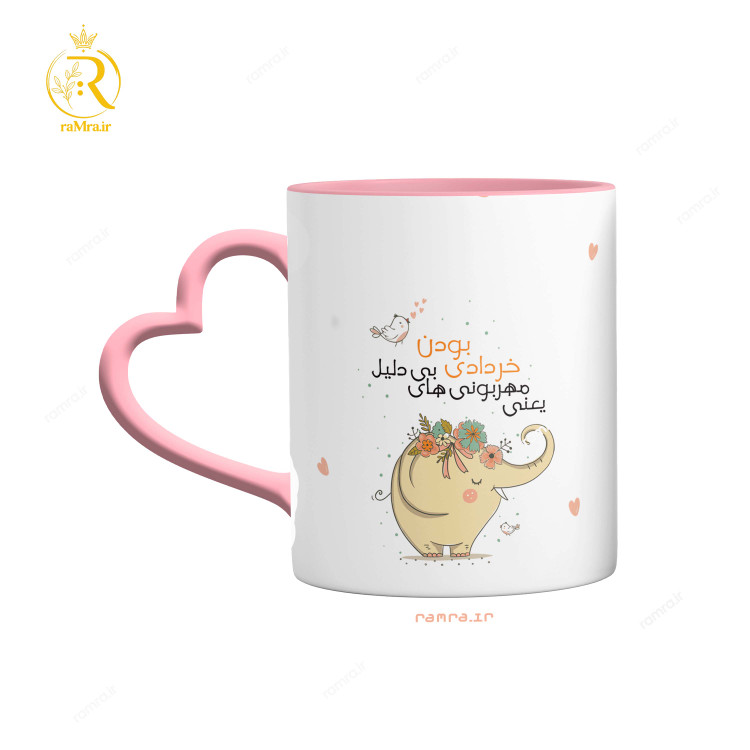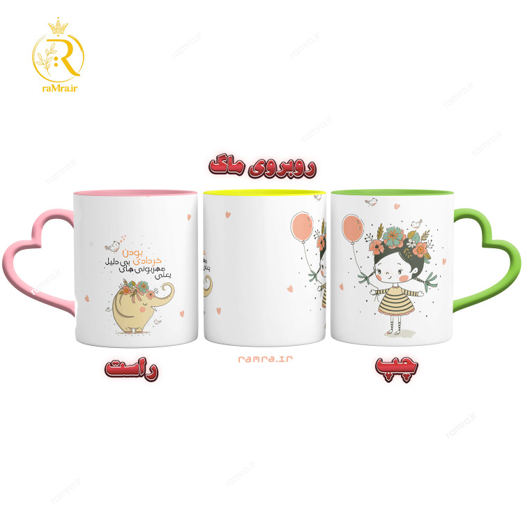 ماگ دختر خرداد با دسته قلبی و داخل رنگی که میتوانید درهنگام خرید رنگ دسته را انتخابش کنید.