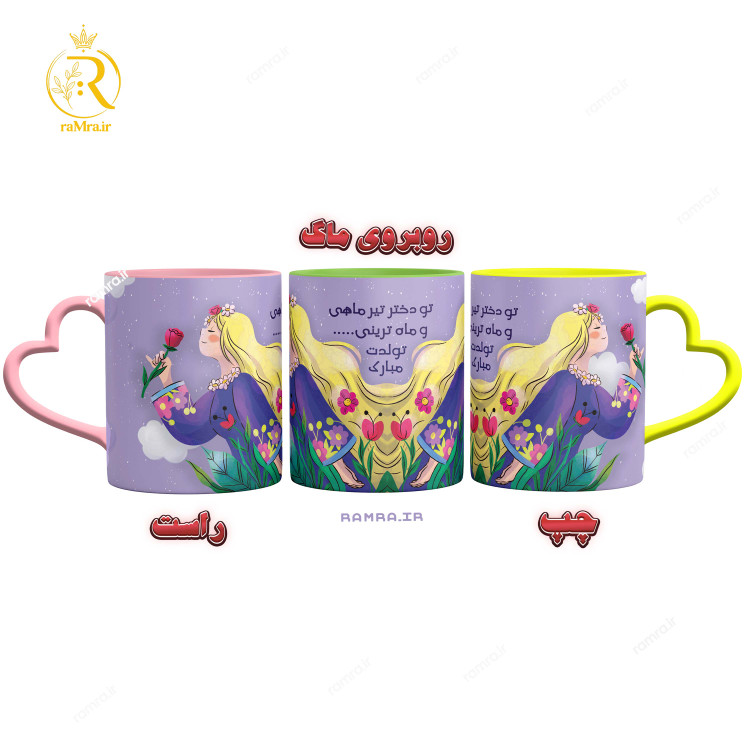 ماگ دختر تیرماهی با دسته قلبی و داخل رنگی که میتوانید درهنگام خرید رنگ دسته را انتخابش کنید.