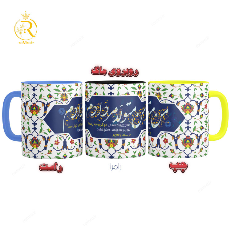 ماگ مردادماهی با دسته و داخل رنگی که میتوانید درهنگام خرید رنگ دسته را انتخابش کنید.