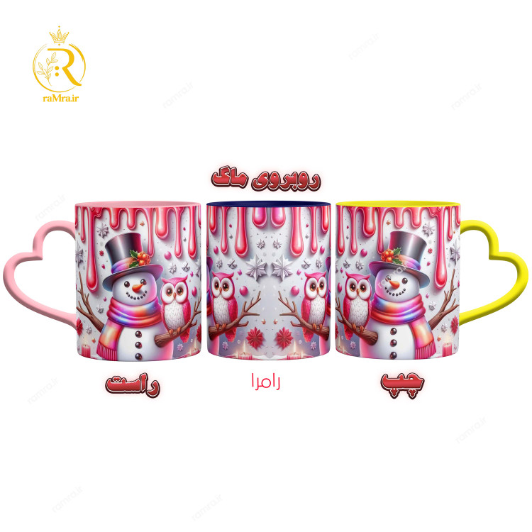 ماگ آدم برفی در کریسمس کد 9135 با تنوع رنگ دسته و داخل ماگ که میتوانید هنگام خرید در فروشگاه رامرا انتخابش کنید