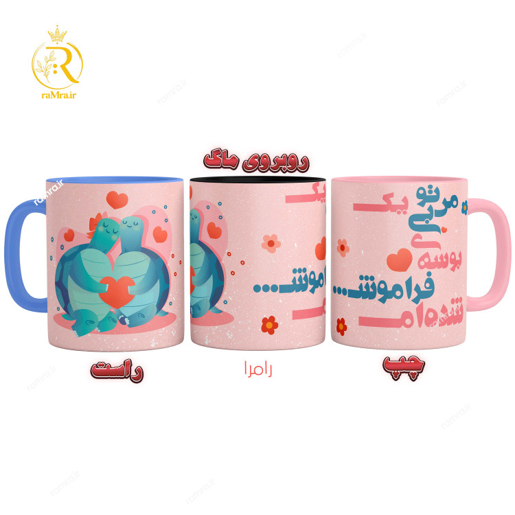 ماگ عاشقانه9162 با دسته و داخل رنگی که میتوانید هنگام خرید در فروشگاه رامرا رنگ دسته را انتخابش کنید