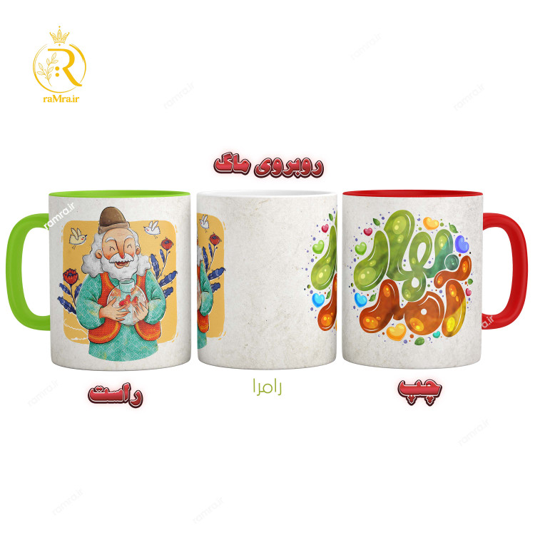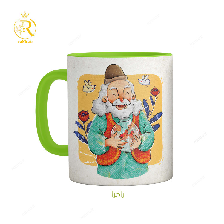 ماگ بهار آمد 9170 با طرح جذاب پیرمرد، دسته و داخل رنگی که میتوانیدهنگام خرید در فروشگاه رامرا رنگ دسته را انتخابش کنید