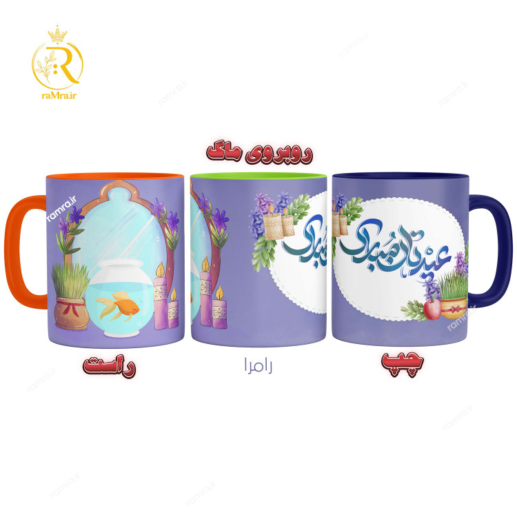 ماگ عیدتان مبارک9171 دسته و داخل رنگی که میتوانید هنگام خرید در فروشگاه رامرا رنگ دسته را انتخابش کنید