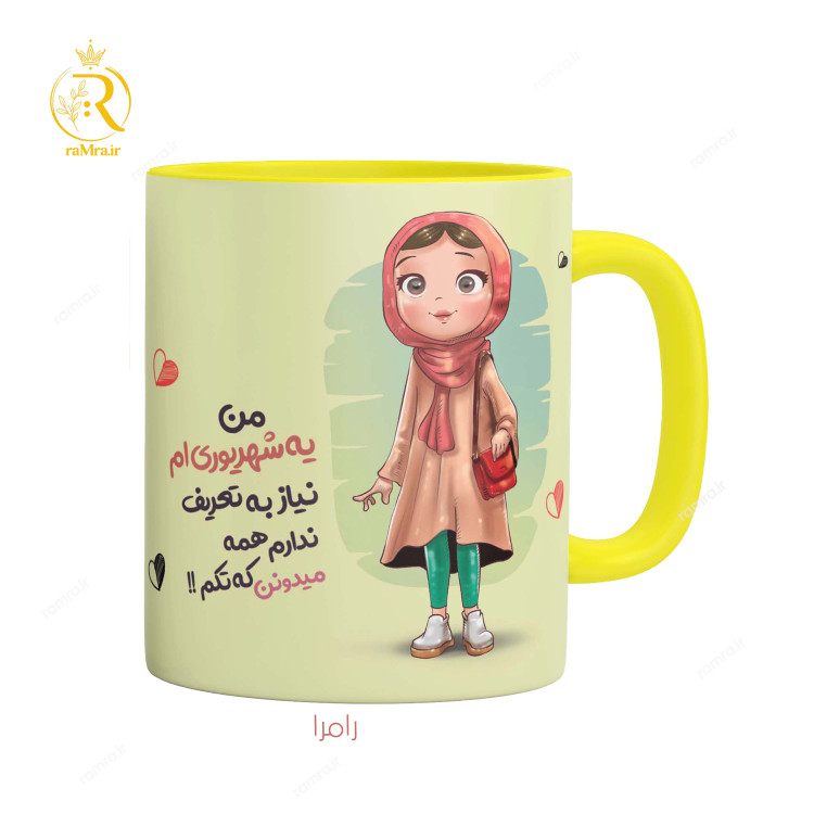 ماگ دختر شهریوری 9178 با دسته و داخل رنگی که میتوانید هنگام خرید در فروشگاه رامرا رنگ دسته را انتخابش کنید.