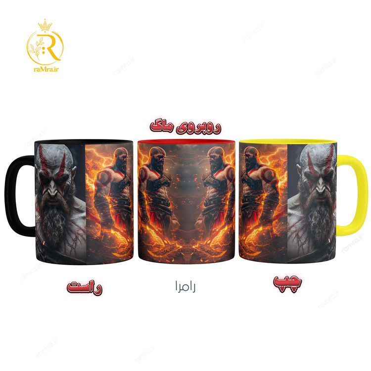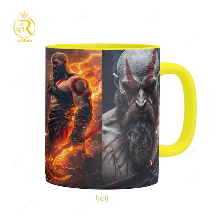 ماگ خدای جنگ GOD OF WAR کد 9189 با دسته و داخل رنگی که میتوانید هنگام خرید در فروشگاه رامرا رنگ دسته و داخل ماگ را انتخابش کنید.