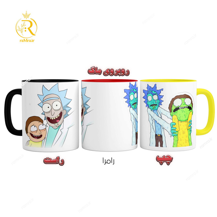 ماگ Rick and Morty کد 9194 با دسته و داخل رنگی که میتوانید هنگام خرید در فروشگاه رامرا رنگ دسته و داخل ماگ را انتخابش کنید.