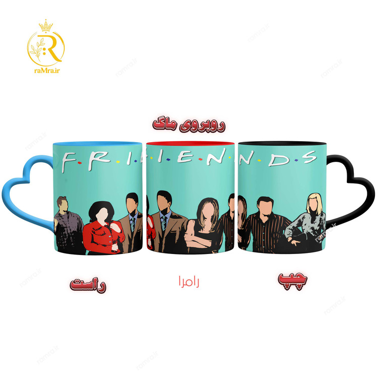 ماگ فرندز Friends کد 9200 با دسته قلبی و داخل رنگی که میتوانید هنگام خرید در فروشگاه رامرا رنگ دسته و داخل ماگ را انتخابش کنید.