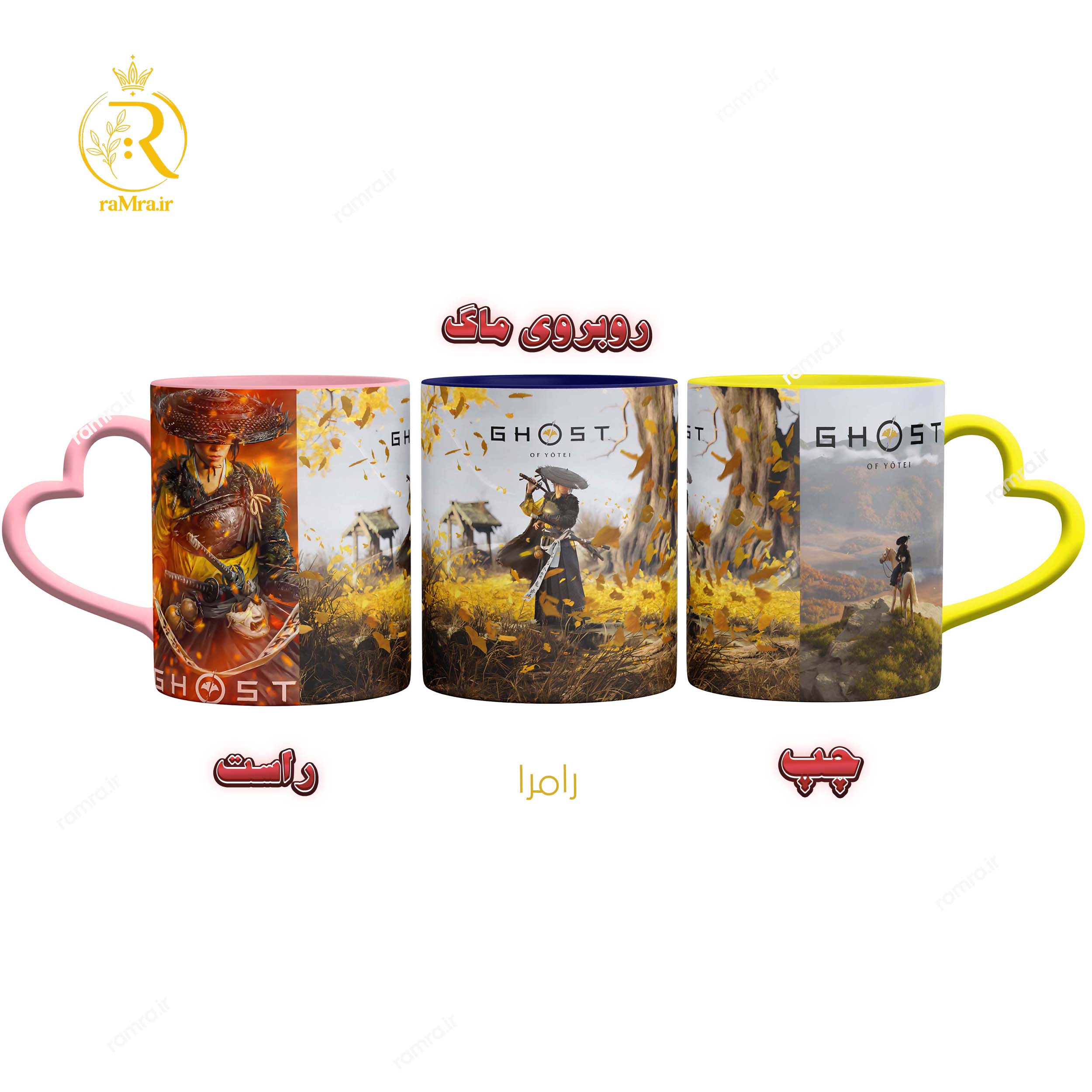 ماگ گوست اف یوتئی Ghost of Yotei کد 9287 با دسته قلبی و داخل رنگی که میتوانید هنگام خرید در فروشگاه رامرا رنگ دسته و داخل ماگ را انتخابش کنید.