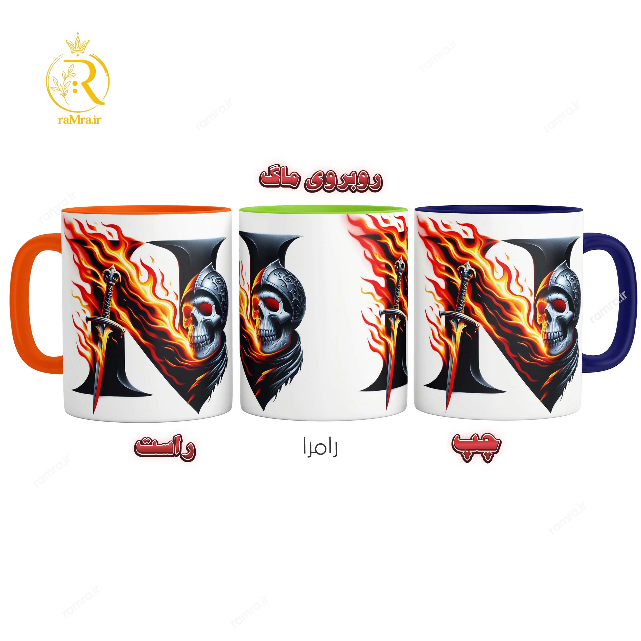 ماگ حرف N کد 9312 با دسته و داخل رنگی که میتوانید هنگام خرید در فروشگاه رامرا رنگ دسته و داخل ماگ را انتخابش کنید.