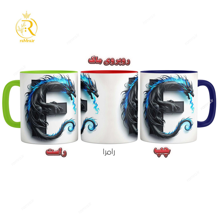ماگ طرح حرف F کد 9315 با دسته و داخل رنگی که میتوانید هنگام خرید در فروشگاه رامرا رنگ دسته و داخل ماگ را انتخابش کنید.