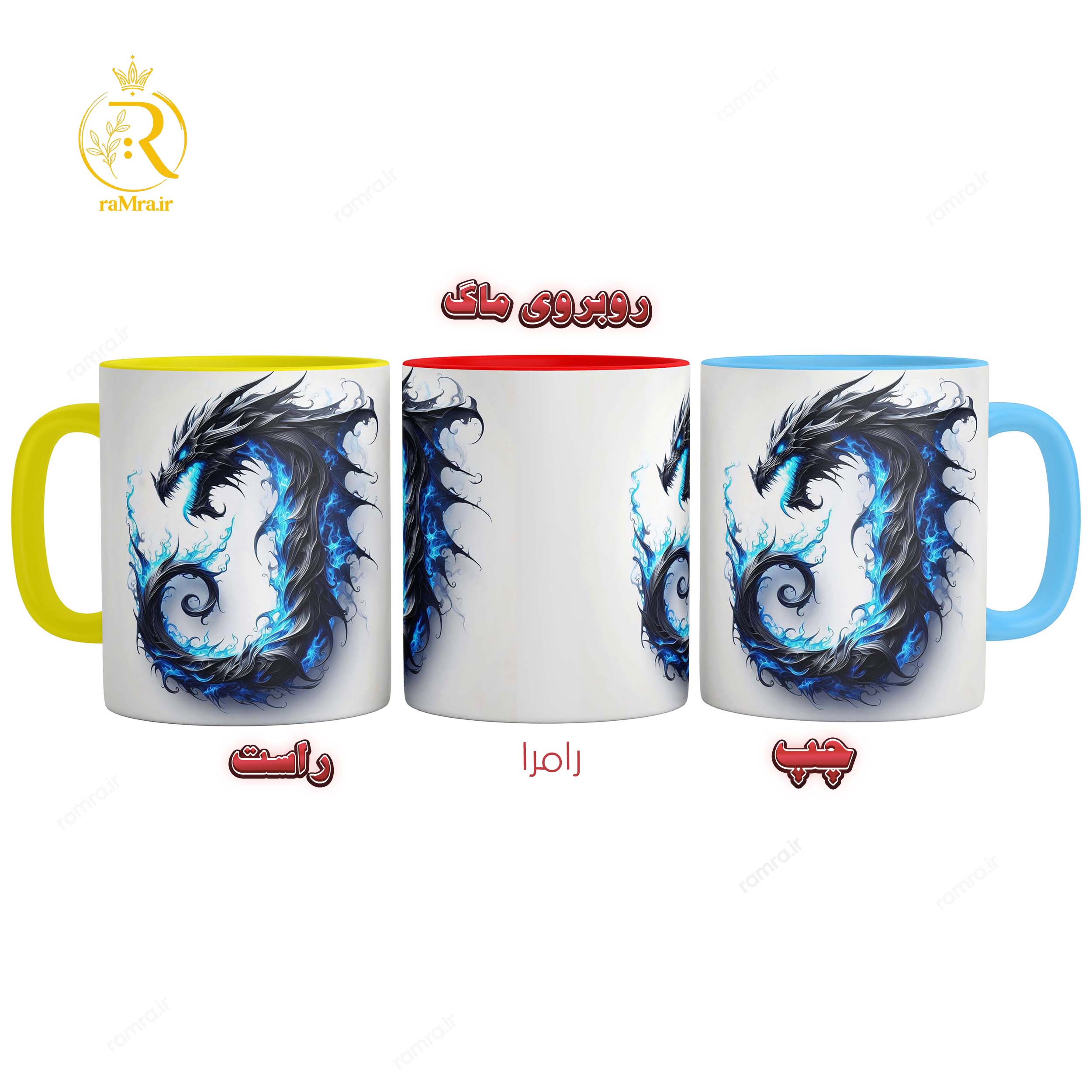 .: اگر میخواهید همین طرح روی ماگ حرارتی (جادویی) باشد، در گزینه های انتخاب رنگ گزینه ی حرارتی (جادویی) را انتخاب کنید) و اگر میخواهید مانند تصویر ماگ دسته رنگی و غیر جادویی باشد میتوانید از بین گزینه ها رنگ مورد علاقتون را انتخاب کنید