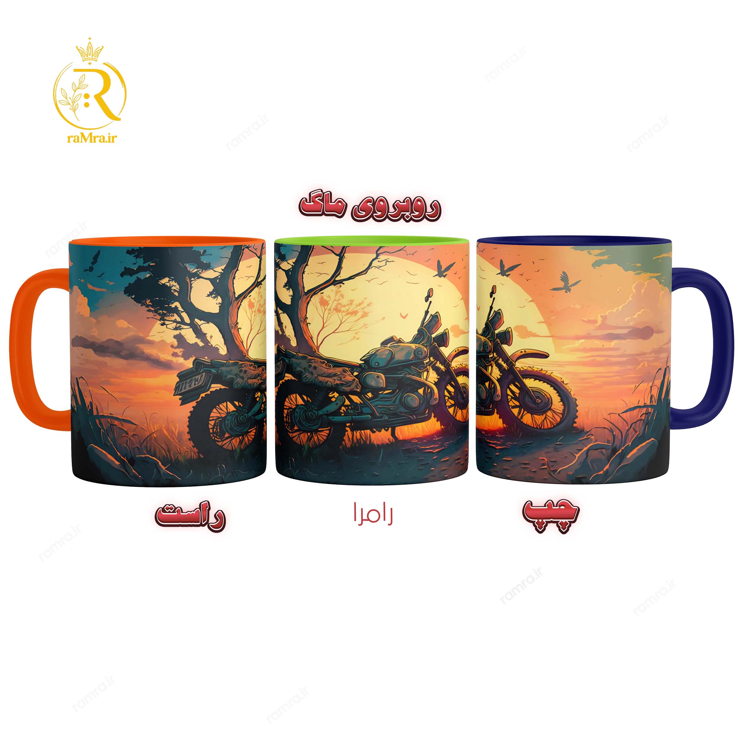 .: اگر میخواهید همین طرح روی ماگ حرارتی (جادویی) باشد، در گزینه های انتخاب رنگ گزینه ی حرارتی (جادویی) را انتخاب کنید) و اگر میخواهید مانند تصویر ماگ دسته رنگی و غیر جادویی باشد میتوانید از بین گزینه ها رنگ مورد علاقتون را انتخاب کنید