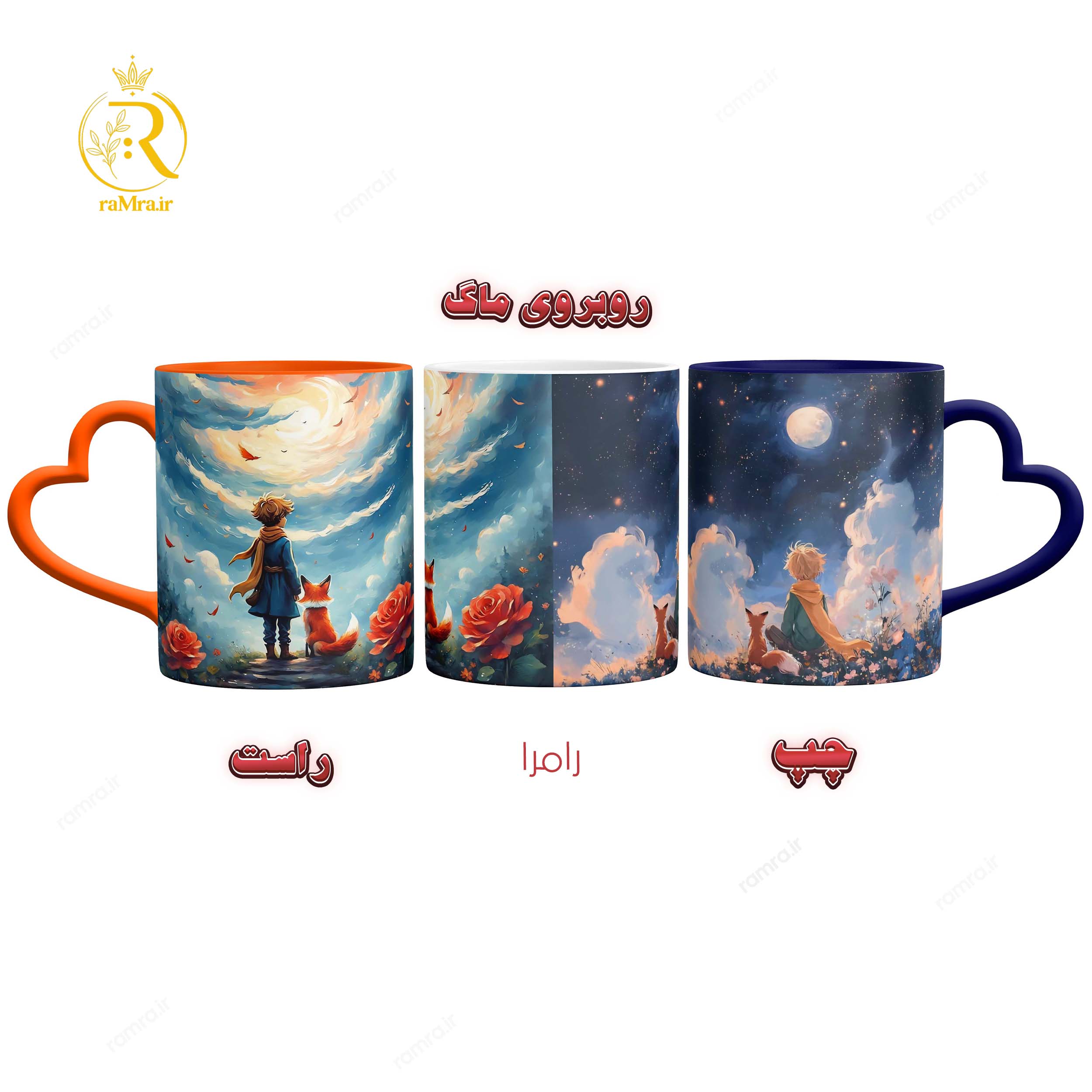 ماگ شازده کوچولو کد 9365 با دسته و داخل رنگی که میتوانید هنگام خرید در فروشگاه رامرا رنگ دسته و داخل ماگ را انتخابش کنید.