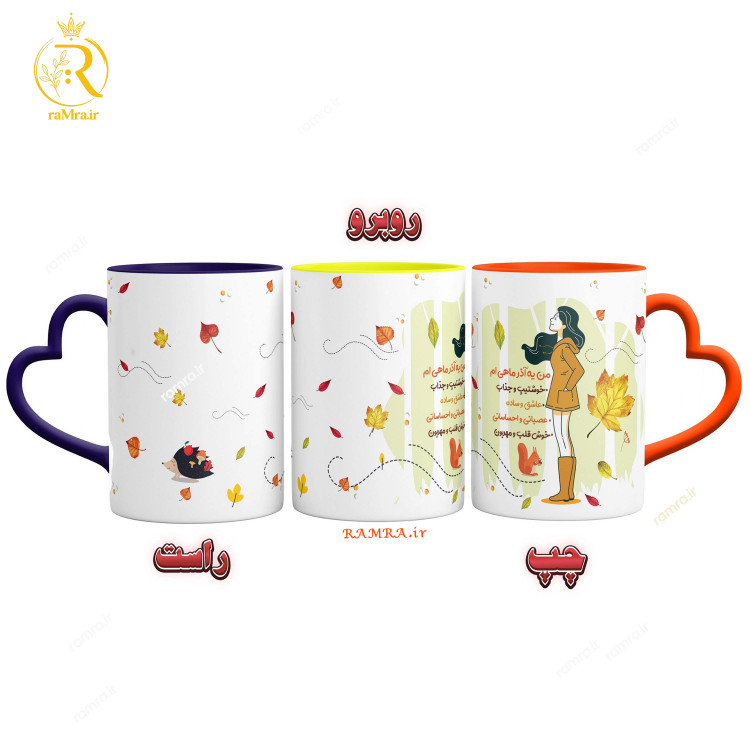 ماگ دختر آذر ماهی دسته قلبی کد 9027